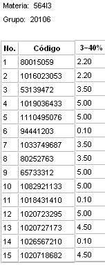 Estas notas corresponden al tercer corte. Las notas definitivas debe arrojarlas el sistema o ustedes mismos hacer los cálculos. Los exámenes y las notas del tercer corte serán entregados este martes 29 de noviembre de 6:00 a 8:00 pm en el salón 304.